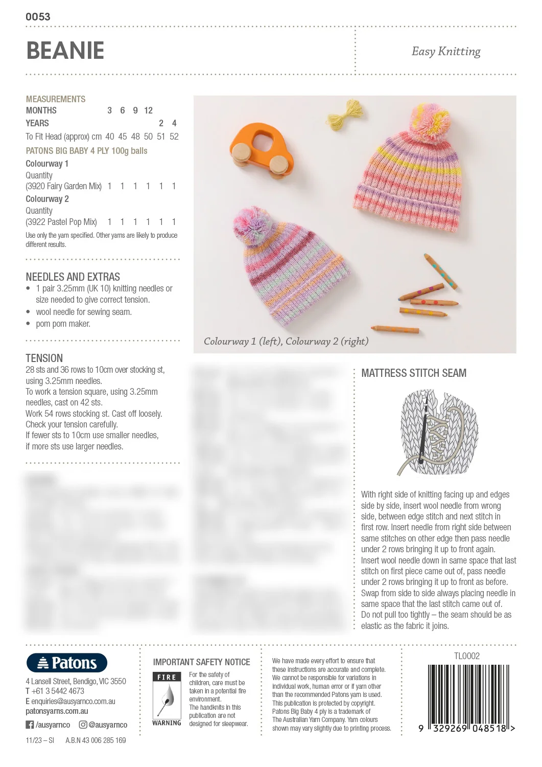 Cardigan, vest and beanie for 3 months to 4 years. Knitted in the popular Big Baby 4 ply yarn, featuring fabulous, fun new colourways!