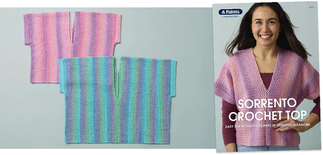 Crochet this easy top - worked sideways in stunning Patons Eleanora.