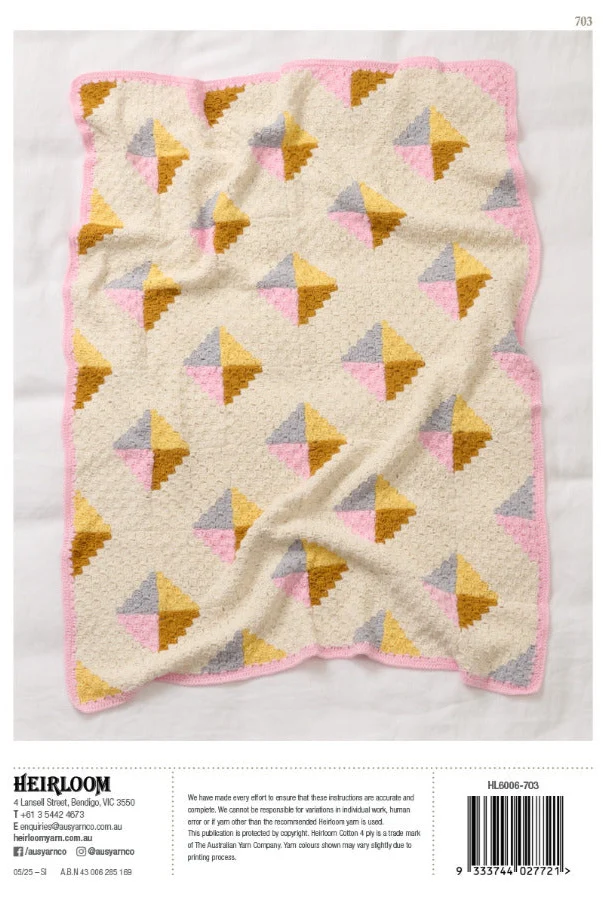 Crocheted using Heirloom Cotton 4 ply this sweet top-down circular yoke jumper is sized 3 months to 2 years. With a matching corner to corner blanket for extra cuteness.