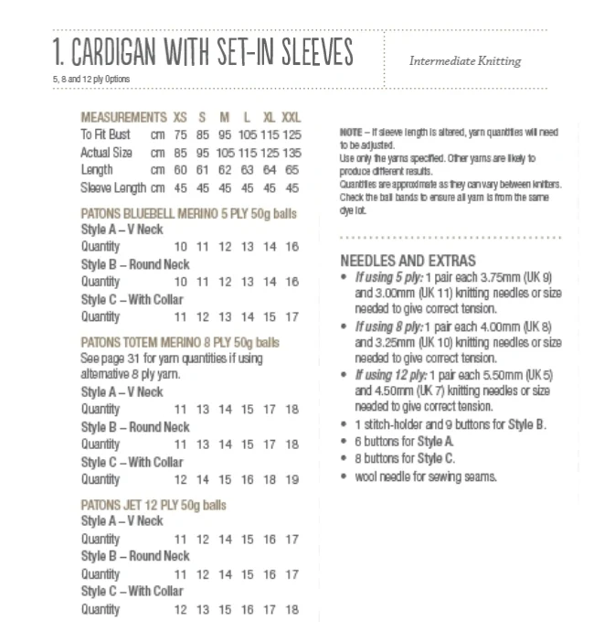 Women's classic knits featuring 44 design options featuring 5 ply, 8 ply and 12 ply yarns.